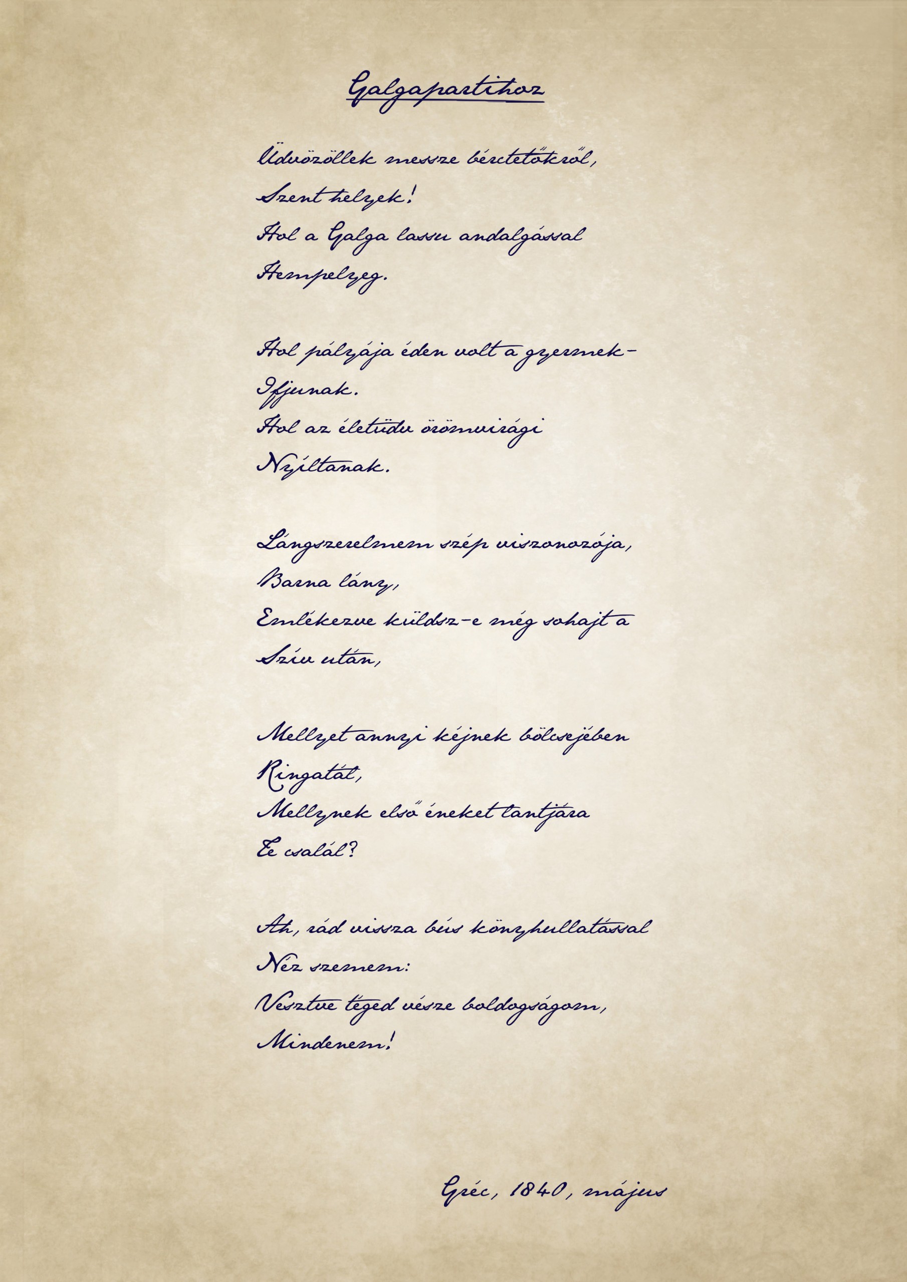 A költő előbb Sopronban volt baka, onnan helyezték át századával 1840 márciusában Grazba, ahol májusig őrszolgálatot látott el. Katonáskodása több szempontból is balul sült el: elkapta a tífuszt, és a helyőrségi kórházba került; a vágyott Tirol helyett zágrábi úticélt jelöltek ki számára; káplárja ármánykodott ellene; költészete ellehetetlenült. Mégis született Grazban egy verse, amely első szerelméhez szól és a galgaparti édent idézi meg.