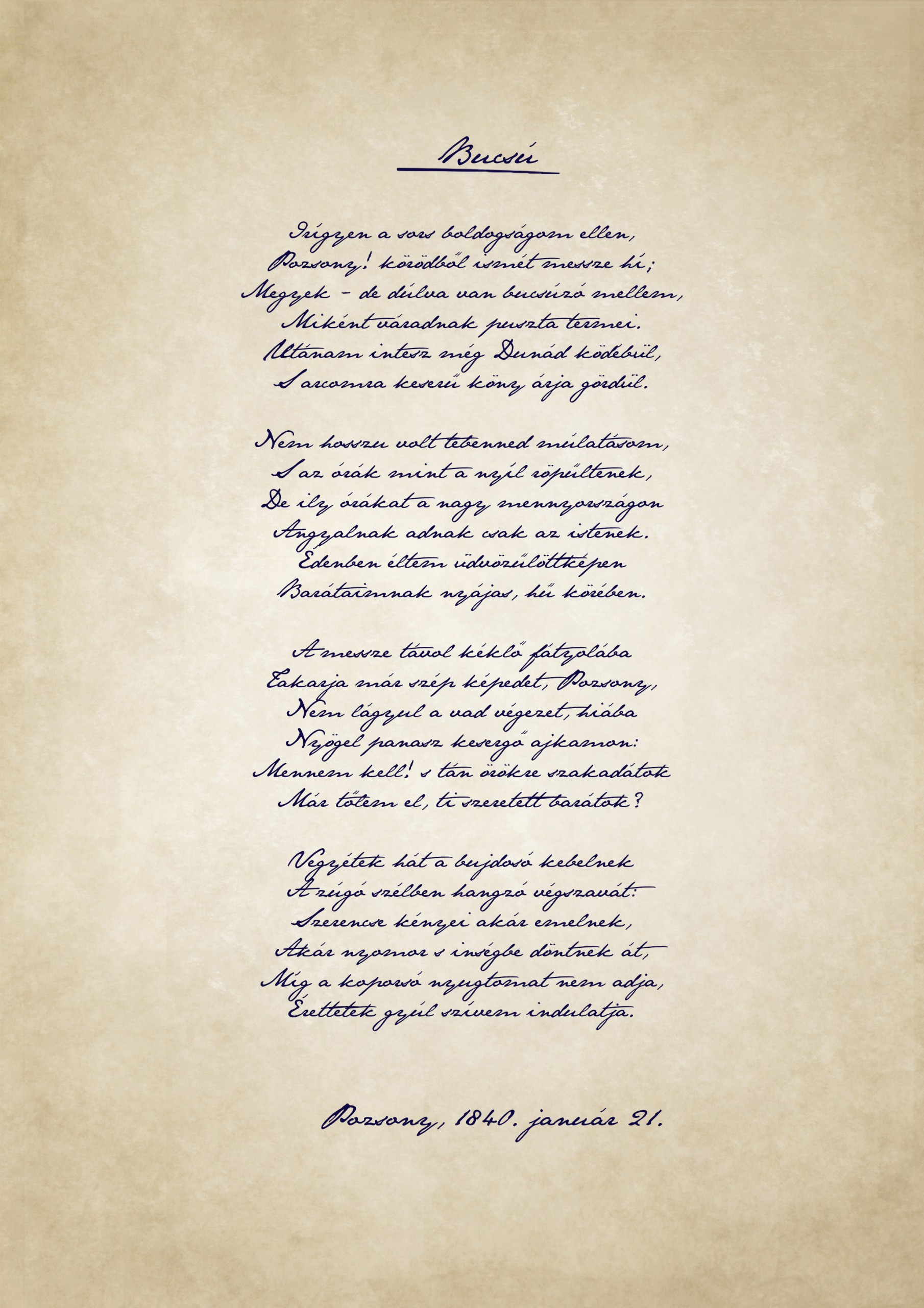 A költő már korábban is járt itt. Először még katona korában, 1839-ben, majd 1841. tavaszán, már színészként, de megfelelő színtársulat híján hamar tovább is állt. Aztán ősszel újra visszatért, hogy egykori iskolatársaival közösen járják be a várost és környékét. 1843 májusában a pozsonyi országgyűlés összehívásának hírére érkezett a városba. Az Országgyűlési Tudósítások másoló irodájában dolgozott. Munka után általában a „Zuckermandli” nevű pozsonyi negyed sörözőiben múlatta az időt. Közben Petőfi megismerkedett ifjú írók társaságával, ami fontos lépcsőt jelentett számára a pesti irodalmi világ felé. Ideje is volt búcsút inteni Pozsonynak.