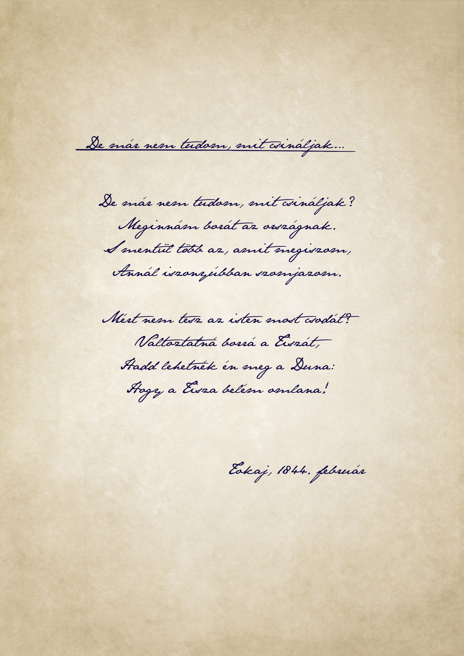 A költőt is a vidék földrajzi adottságai hozták Tokajba: 1843-’44 hideg telén Debrecenből Pestre indult, hogy műveinek kiadót találjon. Az áradó Tisza miatt a rendes pesti útról letérve Tokaj felé került, ahová 1844 februárjában kopott ruhában, kezében egy ólombottal és egy elnyűtt vászontarisznyával esett be megpihenni. S ha már így esett, meg is írta Tokajban a „De már nem tudom mit csináljak” című verset, amely mi más is lehetne, mint egy bordal.