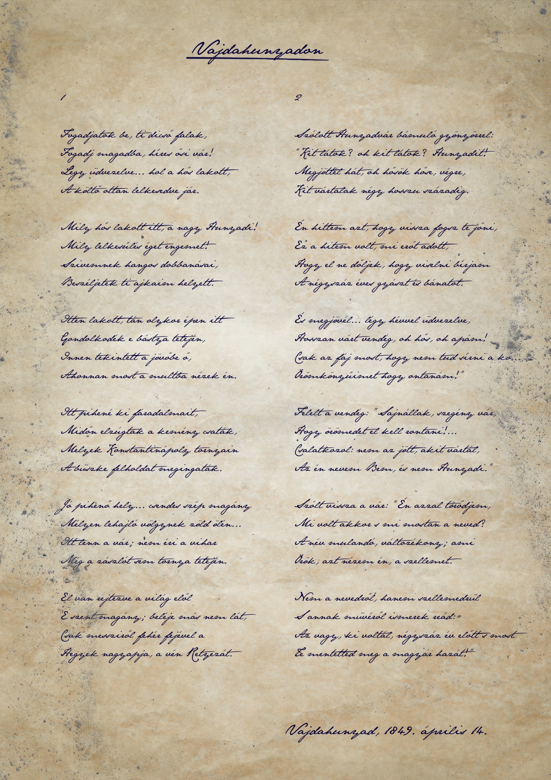 Petőfi 1849 áprilisában látogatott Vajdahunyadra, amikor a Bánság felé menet Bem elhatározta, hogy rövid időre megpihen és vezérkarával megtekinti a híres hunyadi várat. A vasművek várban élő igazgatója szívélyesen fogadta a tábornokot. Amikor Bem megpillantott az asztalán két Petőfi kötetet, felkiáltott: „Ah, mein liebster Petőfi!”, majd rögtön be is mutatta a szerzőt vendéglátóinak. A ház asszonya örömében homlokon csókolta a költőt. Petőfi még aznap este megírta a „Vajdahunyadon” című költeményét, amit aztán elküldött kedves vajdahunyadi vendéglátóinak is.